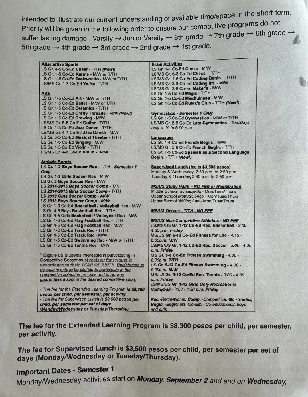 4,每学期每项8300比索的课后班费用(可选,有些课后班免费)(图3)